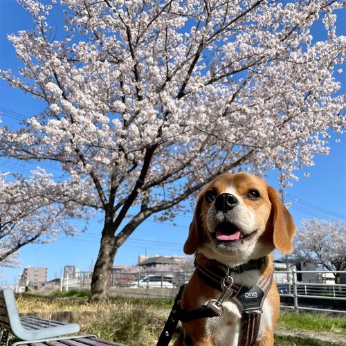 僕 えいと です 昨日は 久しぶりに、小川の近くへお散歩… 川沿いに植えられた桜は まだまだ若い木ばかりですが どれも満開で とてもキレイでした🌸 僕は この小川に架かる橋が少し苦手ですが お花見をする人もほとんどいない場所なので じっくり 草のニオイを…